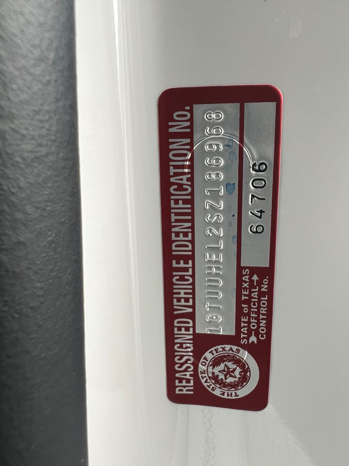 CONDITION Recovered Theft Replacement VIN Plate